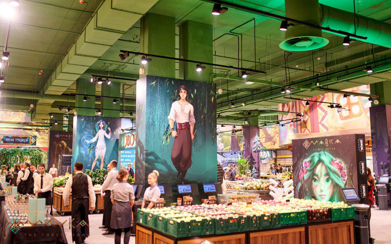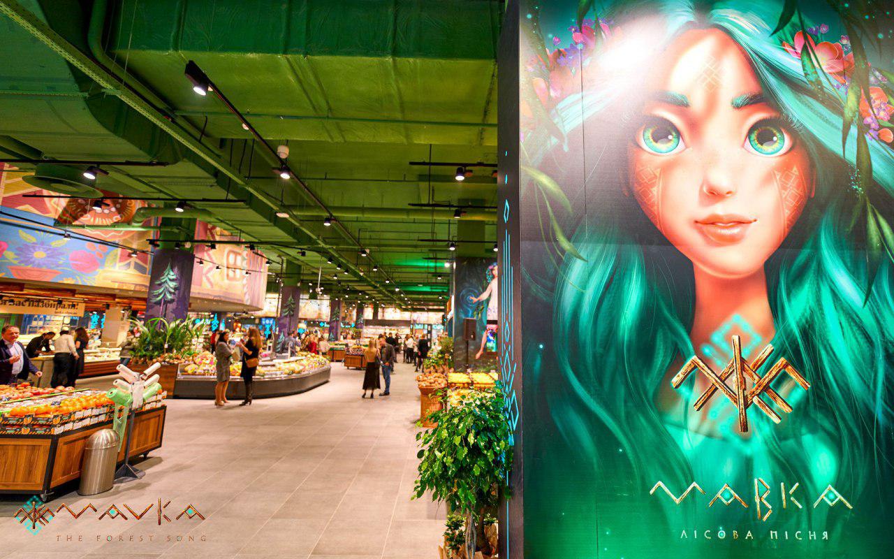 On November 20th, in the Blockbuster Mall, a thematic supermarket branded with the art from an upcoming animated film ‘Mavka. The Forest Song’ opened. This project is the result of artistic collaboration between two big national brands: animation studio Animagrad (FILM.UA Group) and supermarket chain ‘Silpo’.