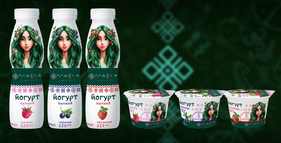 Spectacular packaging for the new products is adorned with images of Mavka, in three beautiful looks. Three new accessories were designed especially for this — three new wreaths for the guardian of the forest. They include berries the taste of which was gifted to the yogurt: strawberry, raspberry, and blueberry. These are traditional forest berries, that are common in Ukraine. Other characters are also present on the packaging: Hush, Mosslings, and Swampy. Yogurt is available in two formats — drinkable yogurt in a 300-gram bottle and the thick one in 170-gram container.