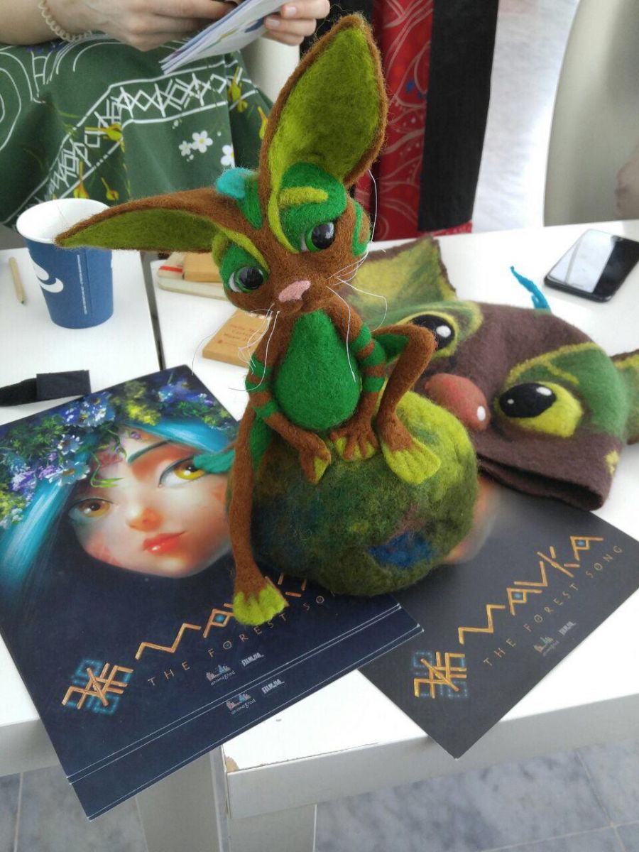 “We haven’t just demonstrated impressive slides and a special video dedicated to interior objects, future books (their publication is planned for the nearest future) and app development; we have also shown on ourselves what “being Mavka” and “Mavka style” means. We wore new dresses from Mavka capsule collection by designer Olga Navrotska who is responsible for the film’s costumes. Our looks were complemented with exclusive silver pendants shaped like Mavka logo from our partners, Oberig jewelry brand (we’ll inform about collaboration with them soon, as it is a spectacular initiative), and original wreaths. And the toy of Swampy felted from wool by a Ukrainian craftsman drew close attention not only during our pitch but also during the whole forum,” says Anna Eliseeva, creative producer.